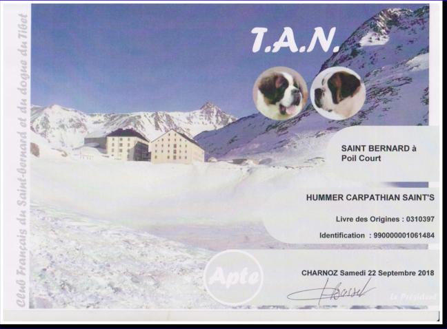 Recommandé Niveau 4 sur la grille de sélection,du Club Français du Saint Bernard